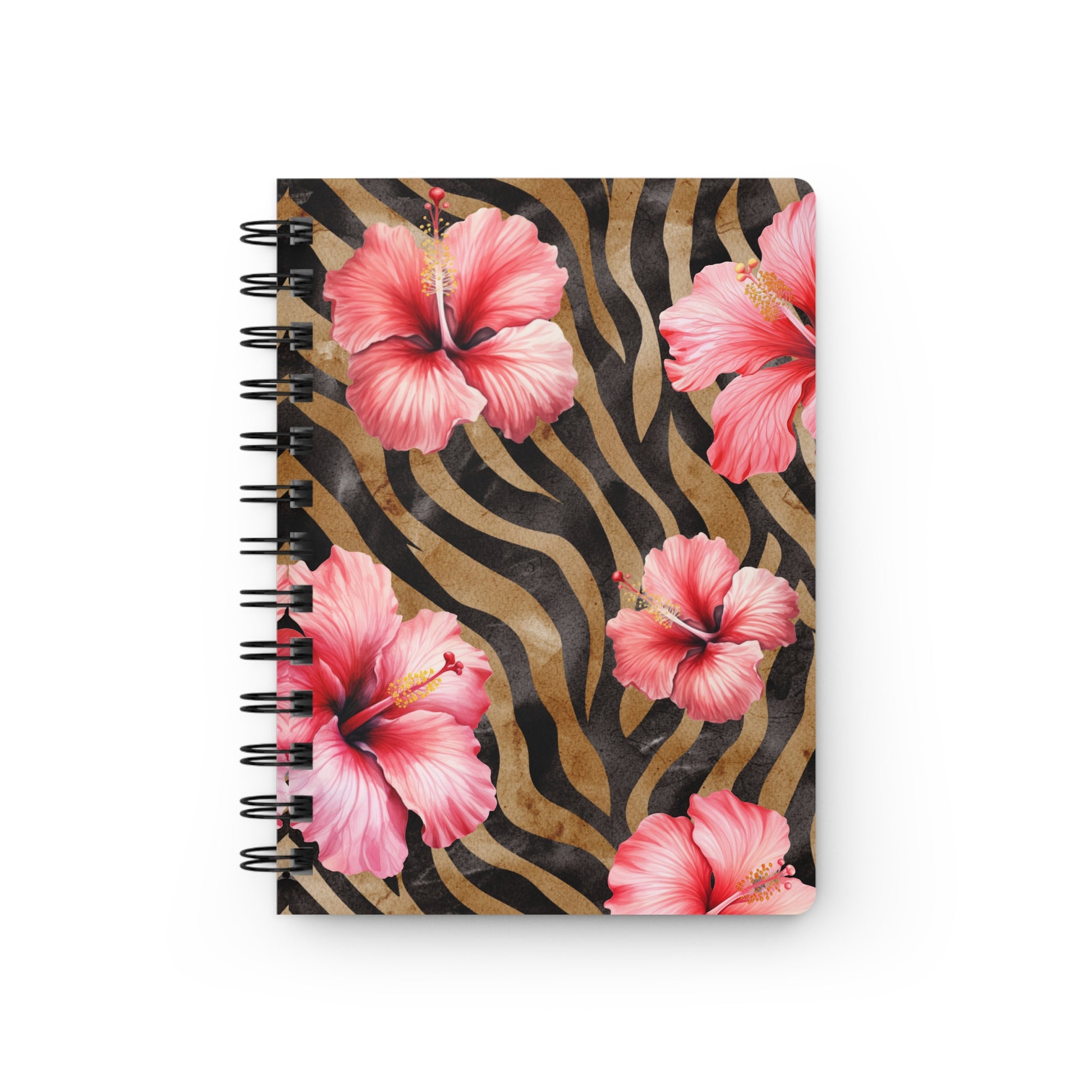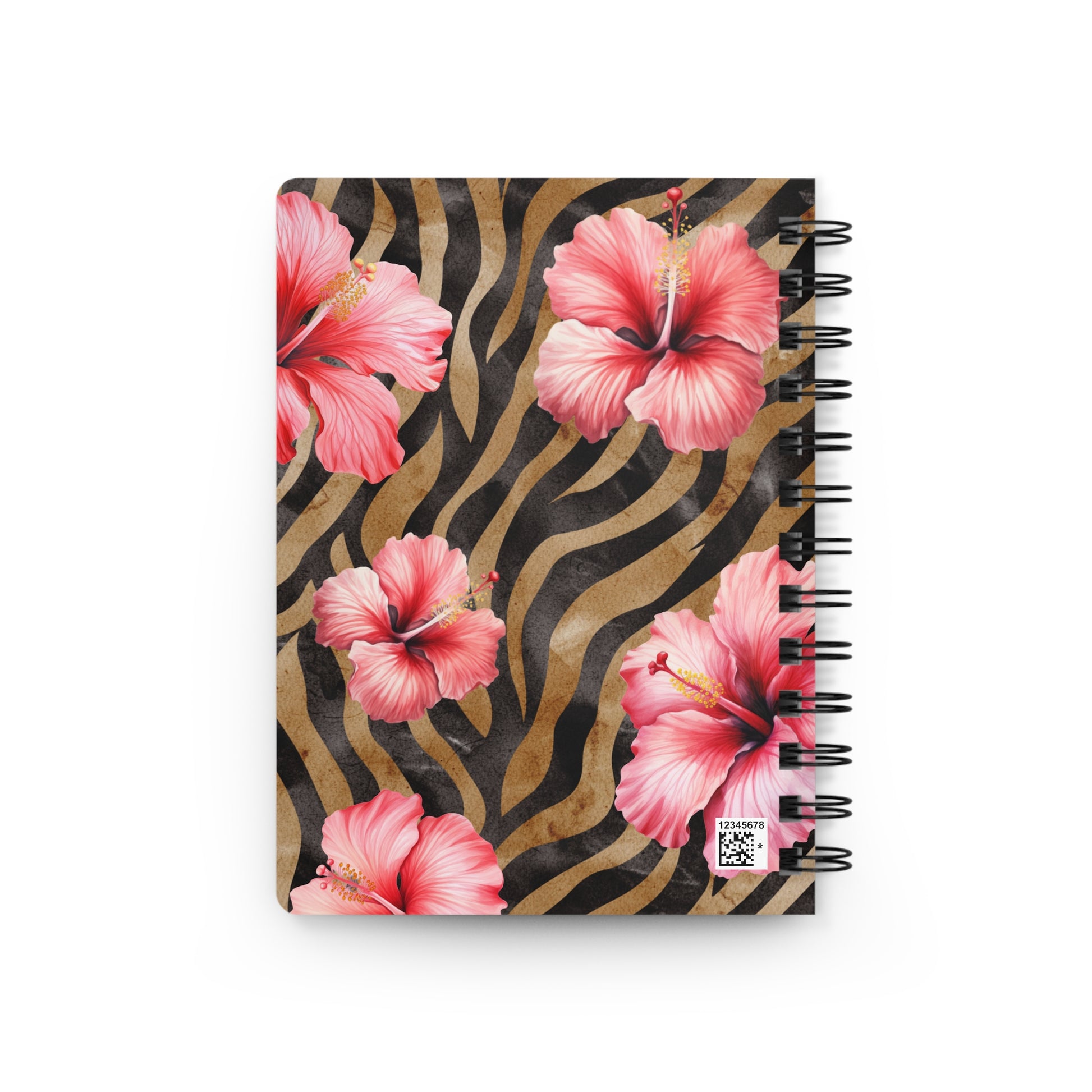 Unleash your creativity with this bold and stylish spiral-bound notebook. Featuring an eye-catching tiger print background adorned with vibrant pink hibiscus flowers, this journal is the perfect blend of exotic charm and fierce elegance.