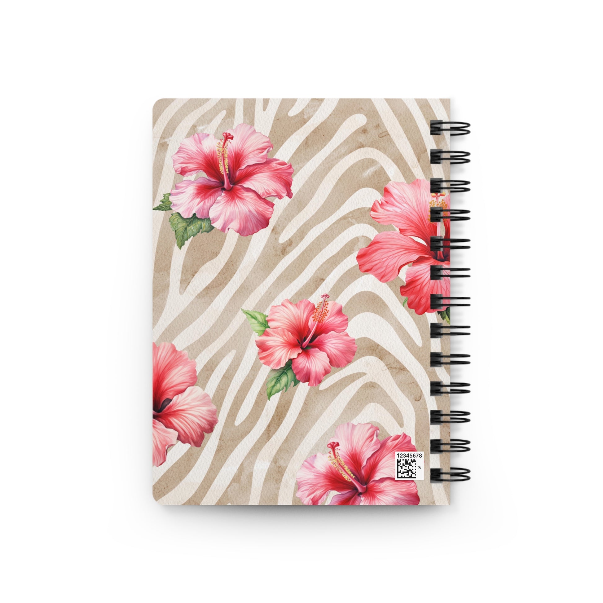 Unleash your creativity with this bold and stylish spiral-bound notebook. Featuring an eye-catching tiger print background adorned with vibrant pink hibiscus flowers, this journal is the perfect blend of exotic charm and fierce elegance.