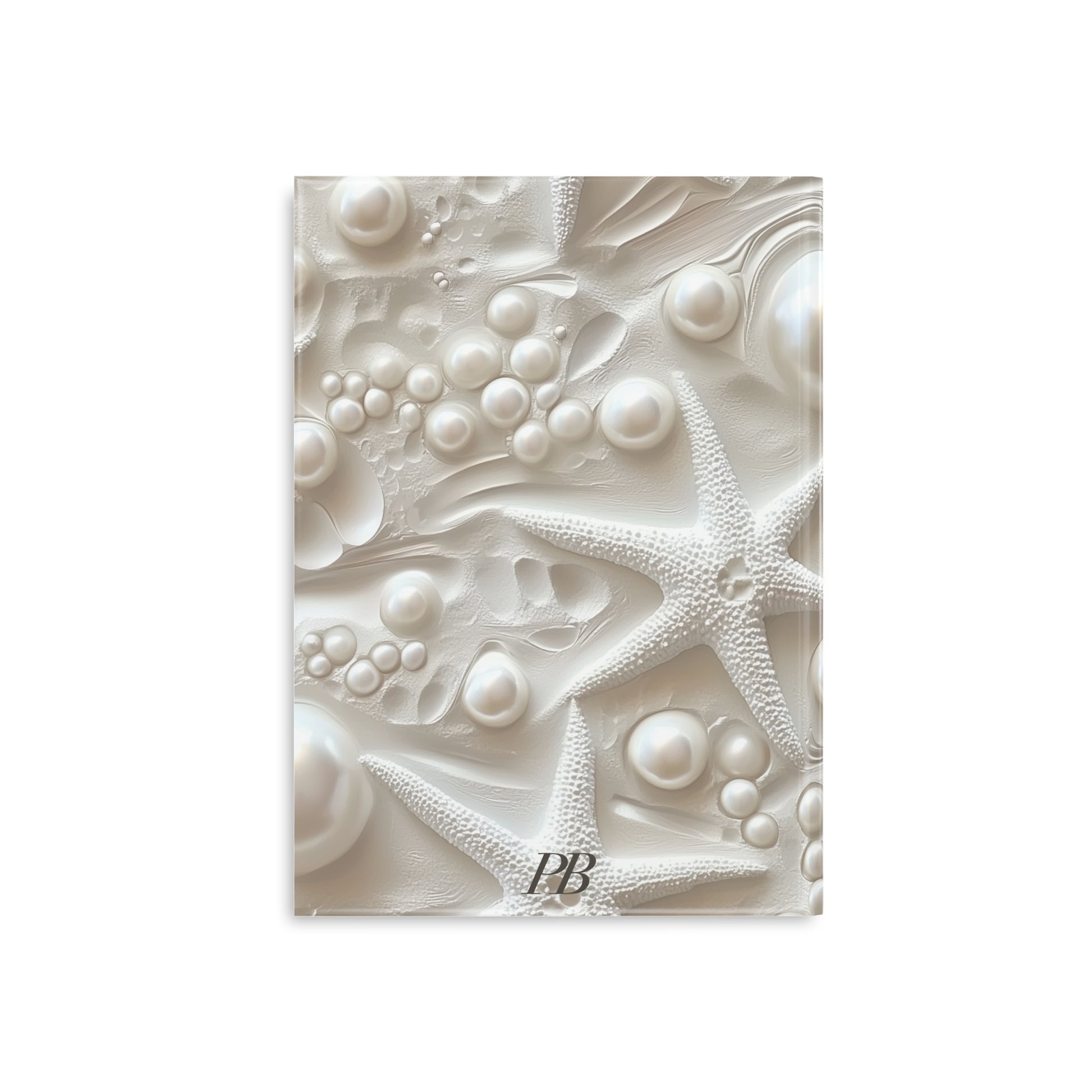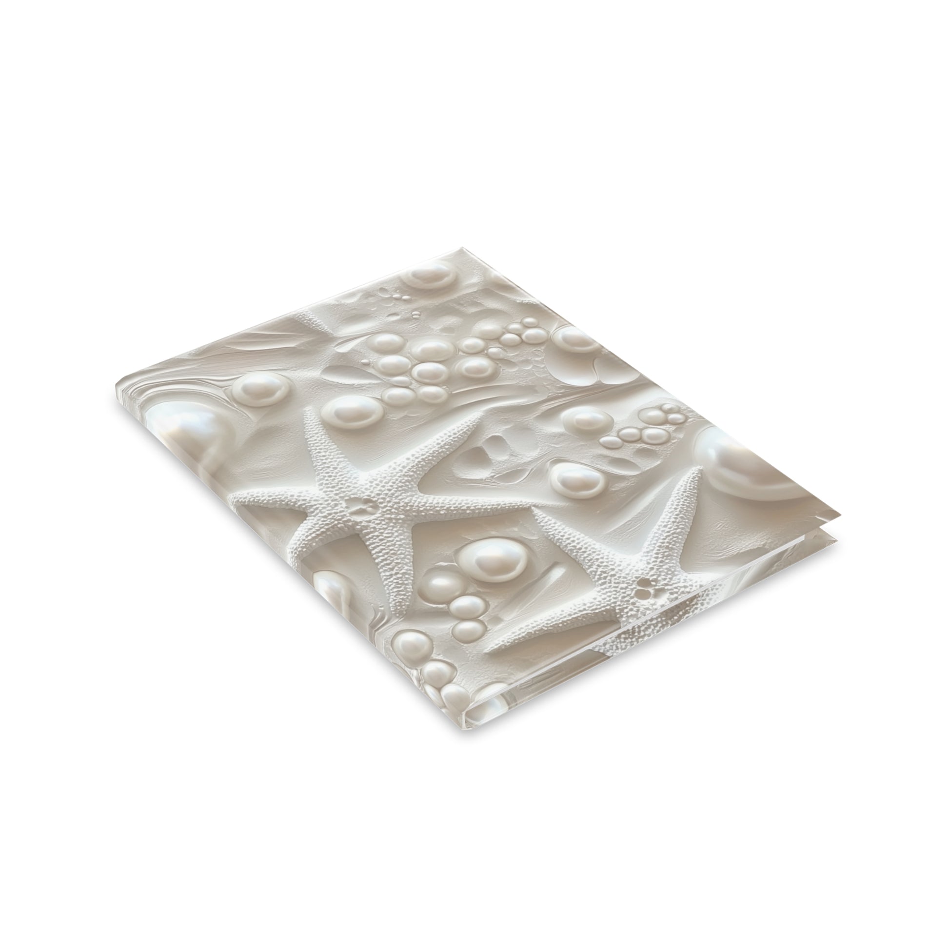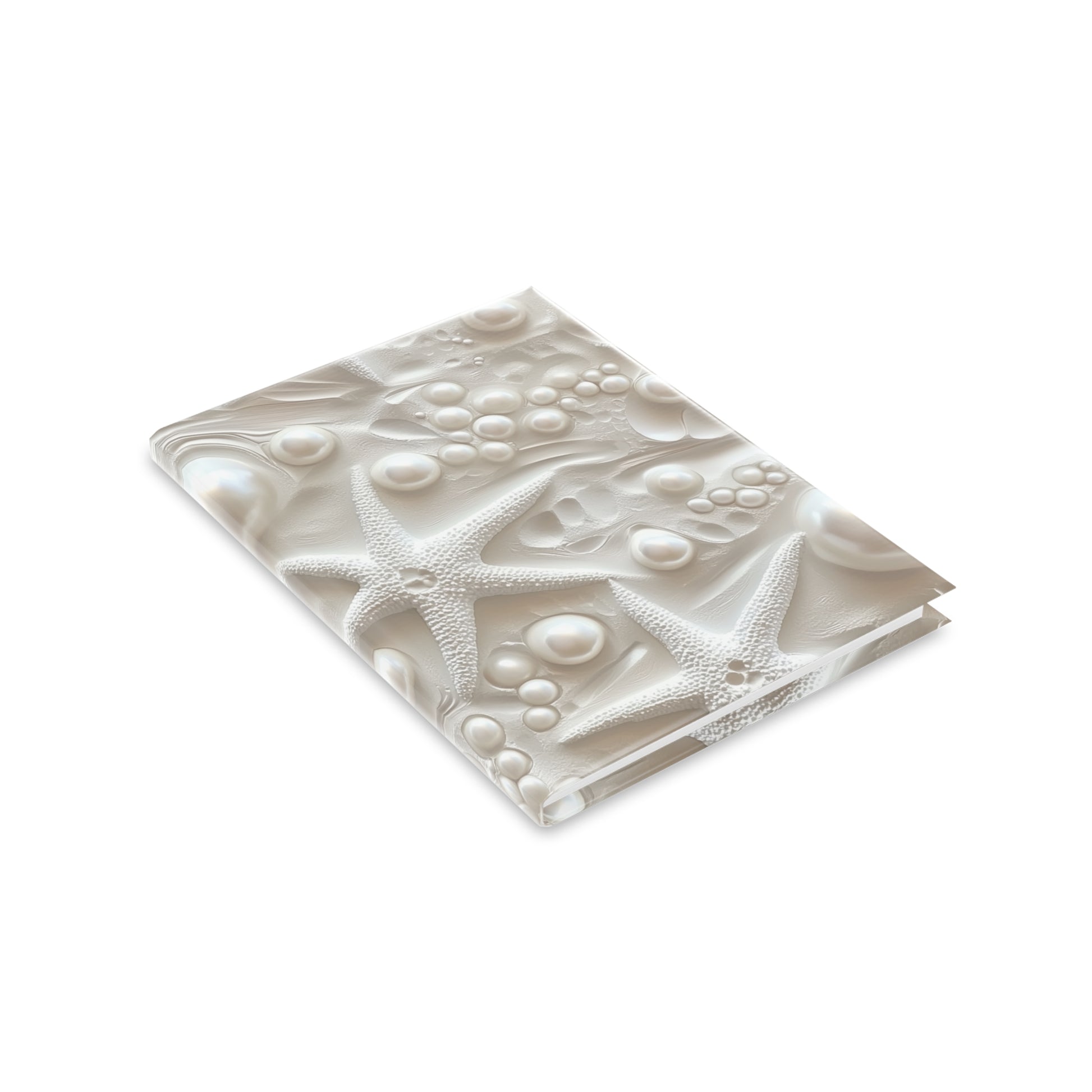 In a world increasingly drawn to nature’s quiet luxury. The Ocean Pearl Elegance Jornal captures the delicate balance between organic texture and modern sophistication. Featuring embossed starfish silhouettes and clusters of luminous pearls, the design evokes the calming rhythm of the sea. The soft ivory palette radiates purity and timelessness, while the 3D-like detailing invites a closer look—and touch.