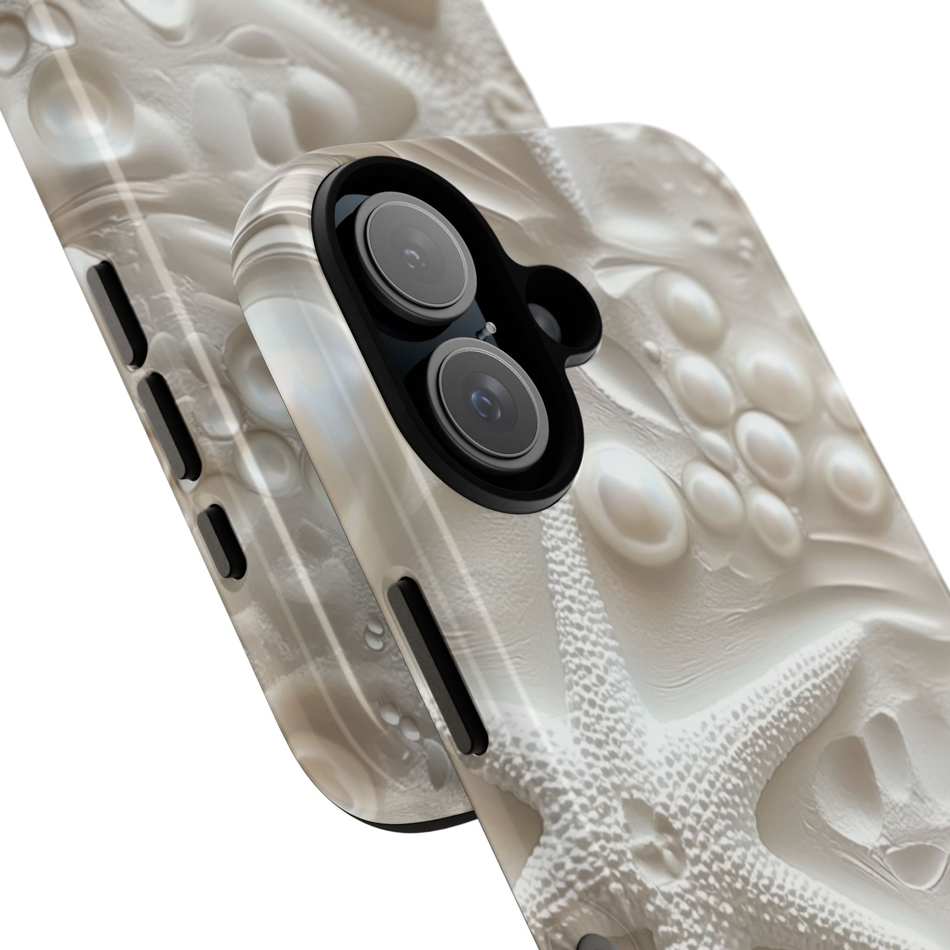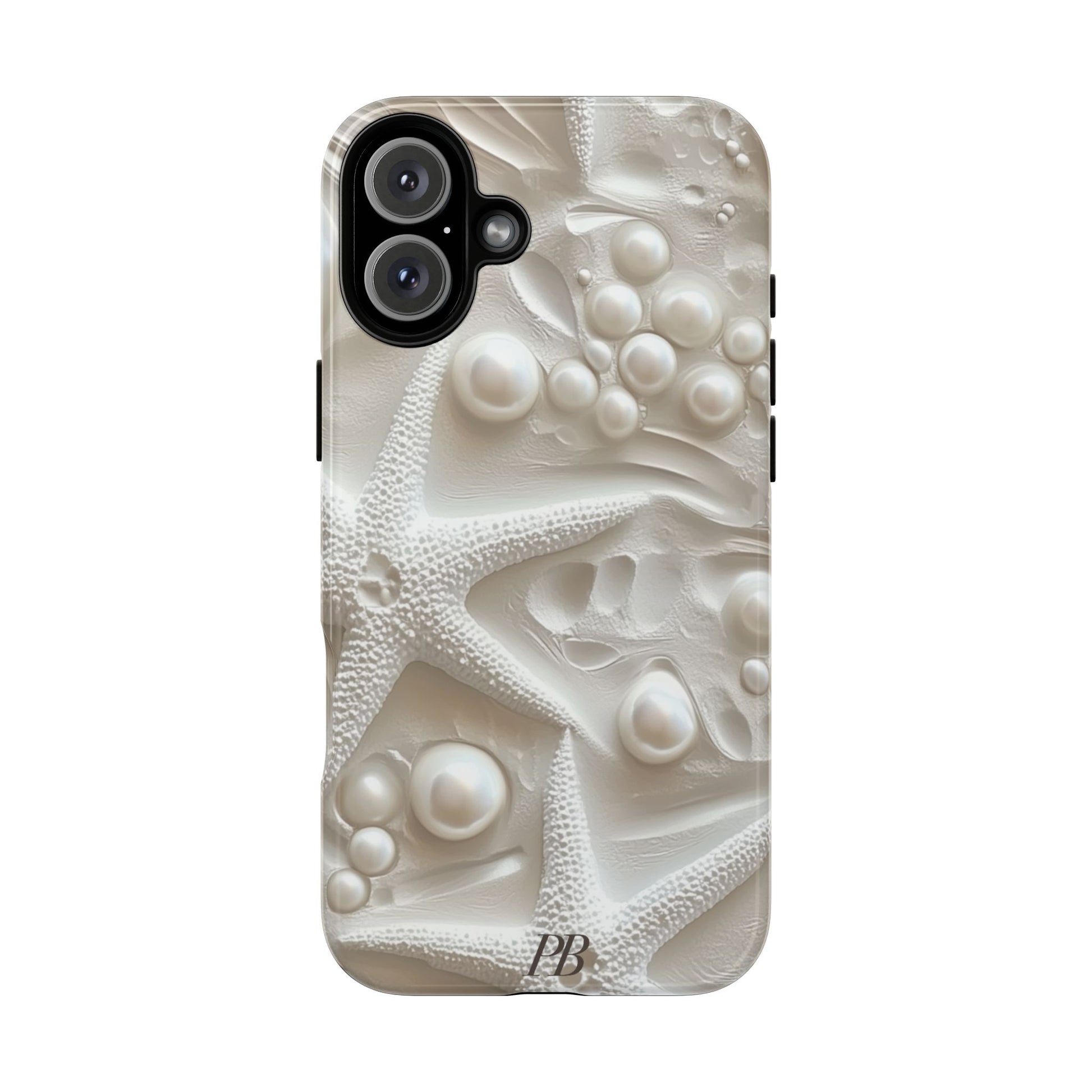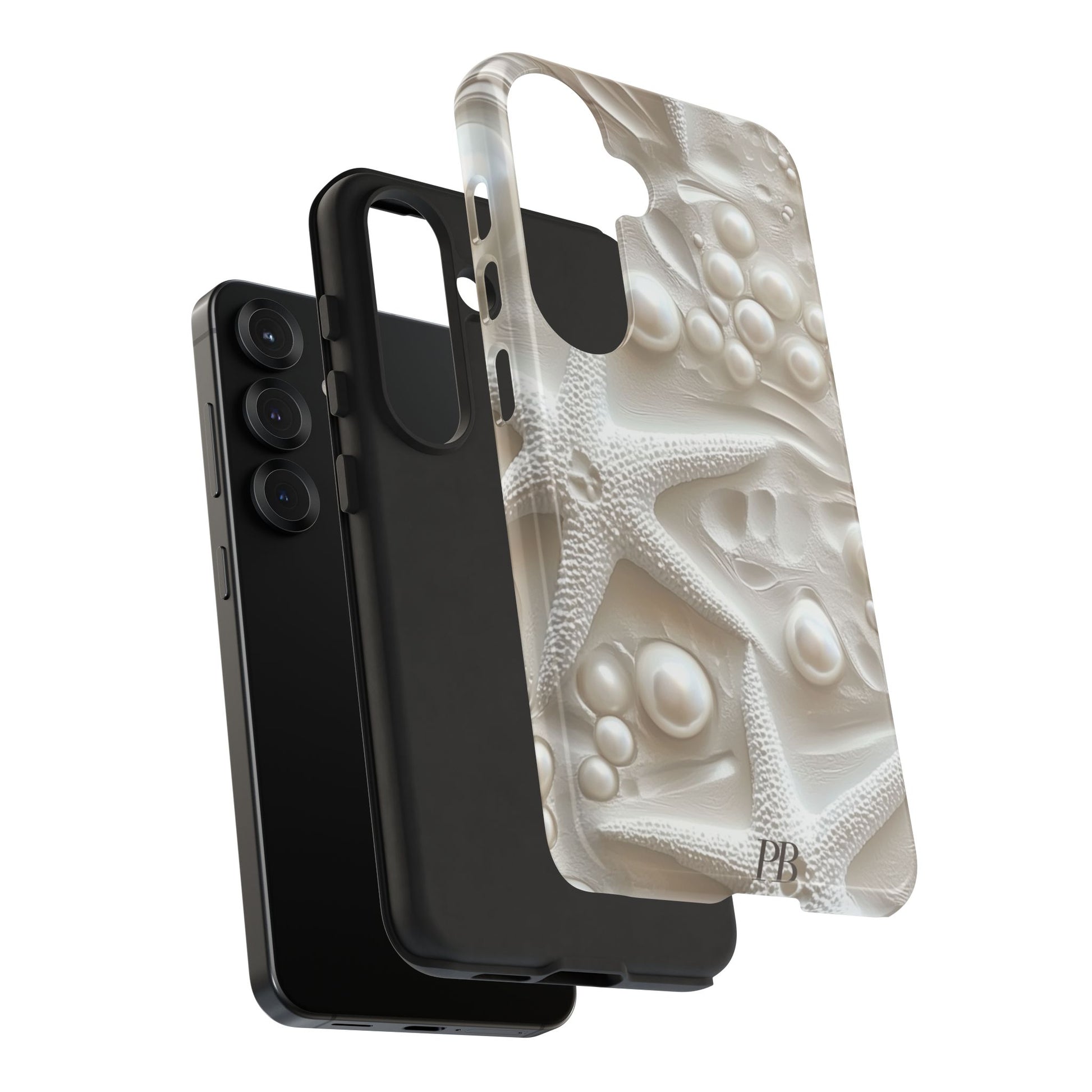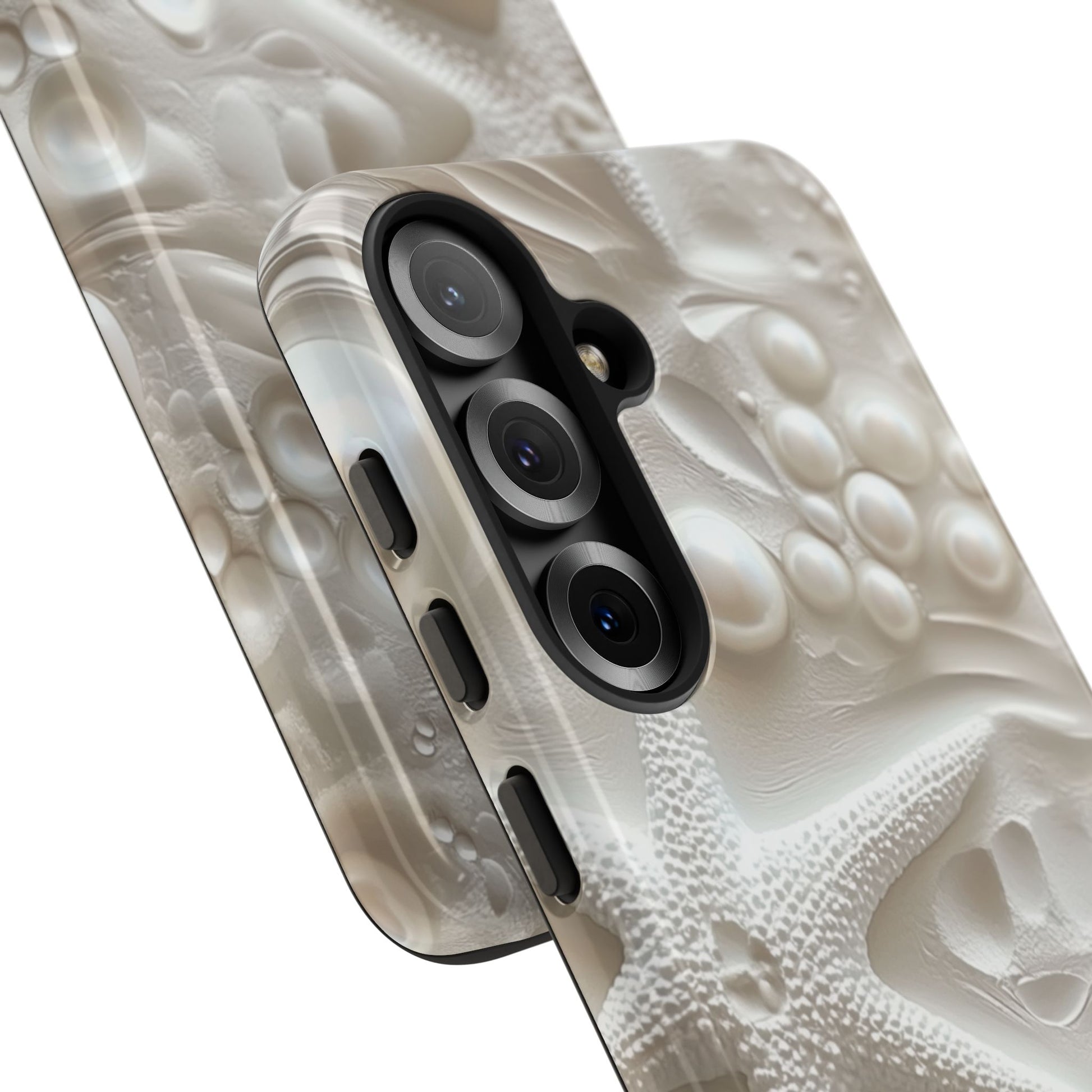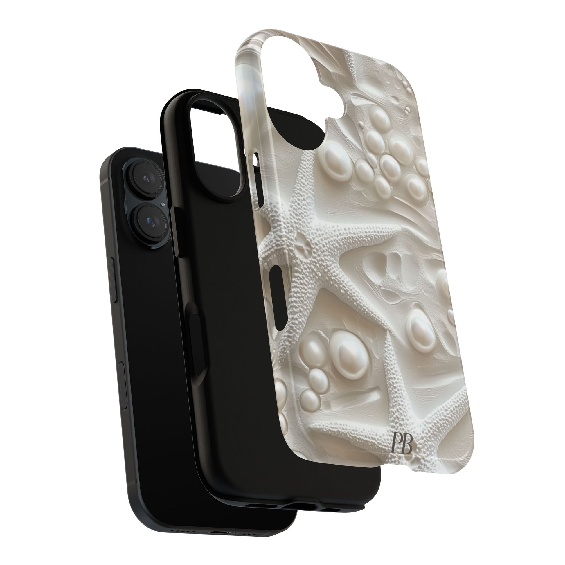 Featuring a stunning 3D-inspired design of textured starfish and glossy pearls in soft ivory tones, this case brings a touch of coastal luxury to your everyday essentials. Crafted for both style and protection, it combines artistic detail with durable materials to guard your phone against scratches and bumps. Perfect for ocean lovers and those who appreciate refined, natural aesthetics.