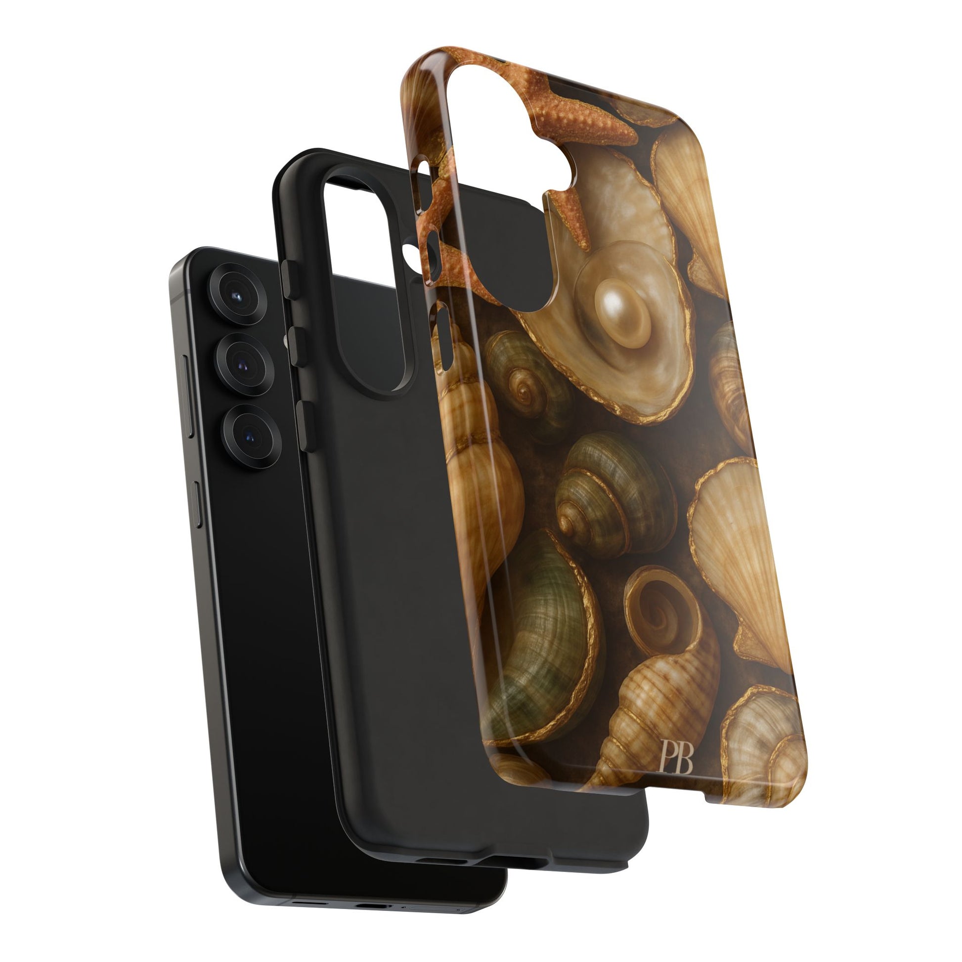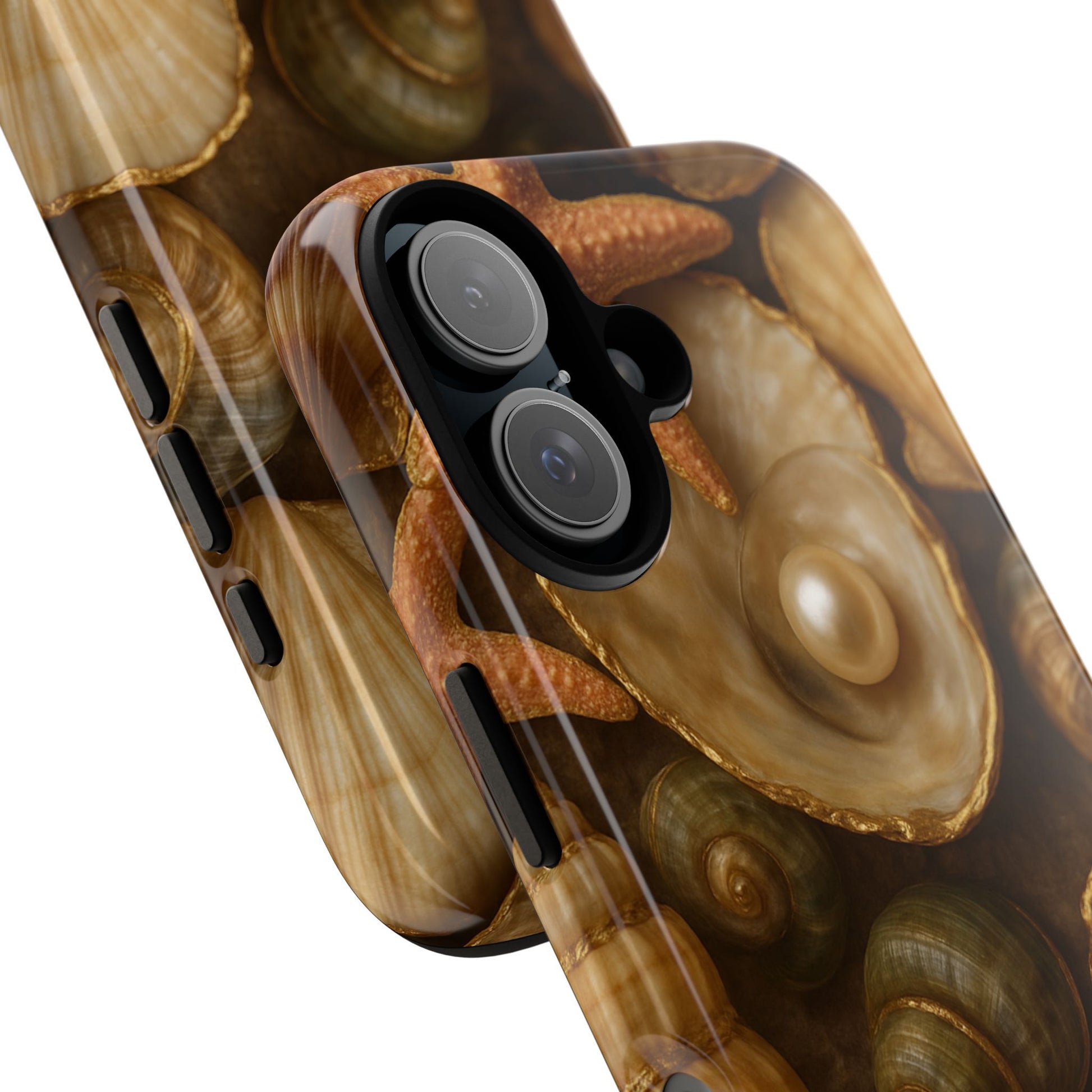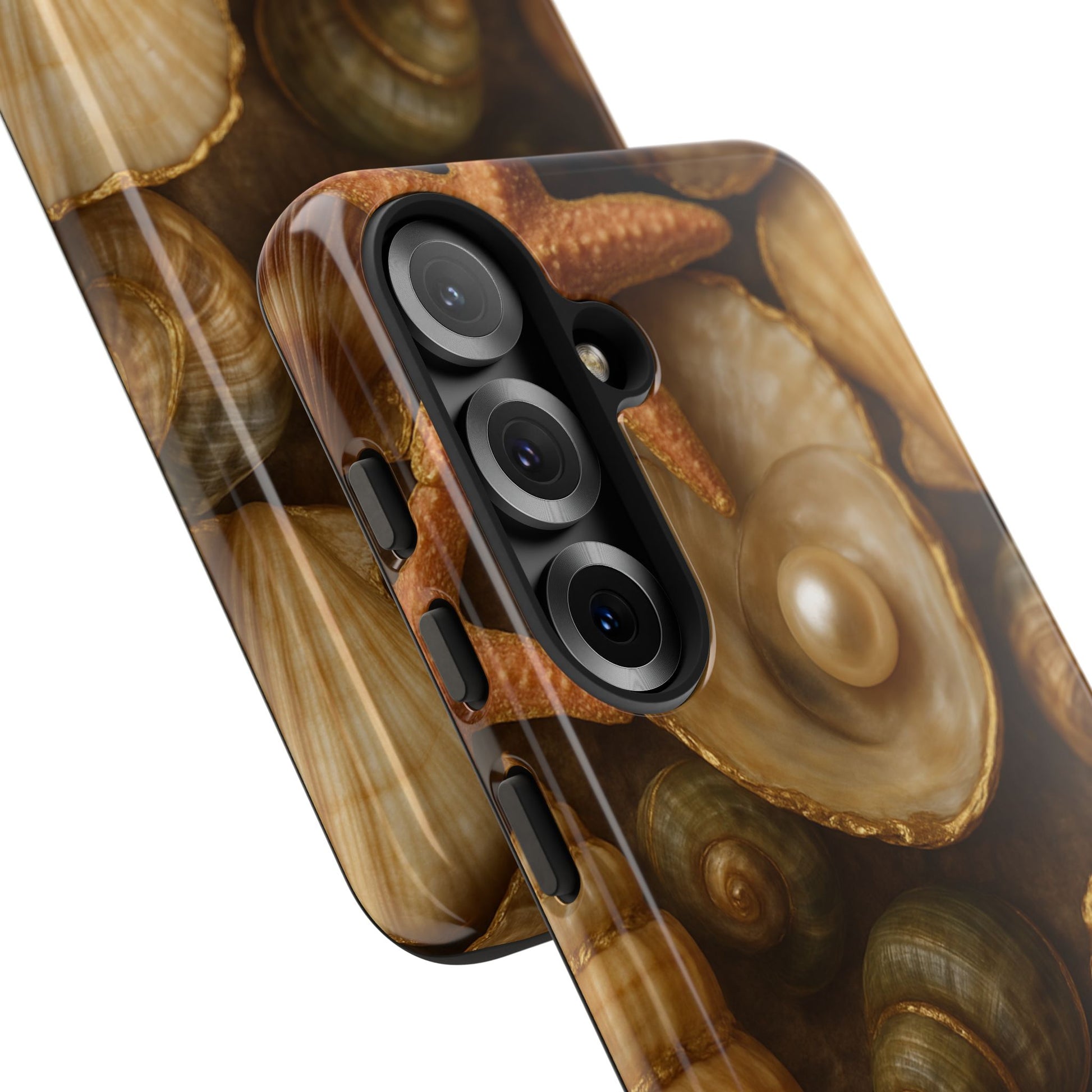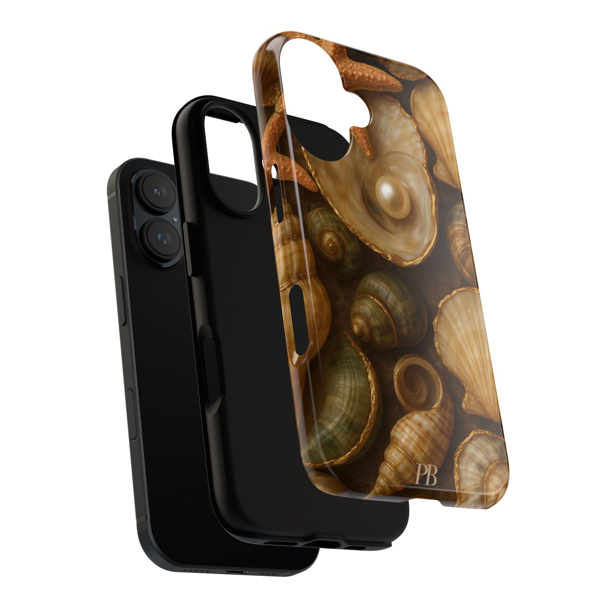 Dive into the serene beauty of the sea with Ocean Treasures. This elegant phone case features a rich, detailed collection of seashells, starfish, and a glowing pearl nestled in a golden-edged shell. The warm, earthy tones evoke a sense of calm and coastal nostalgia. Perfect for ocean lovers and dreamers, this design brings a piece of the seaside to your everyday life.