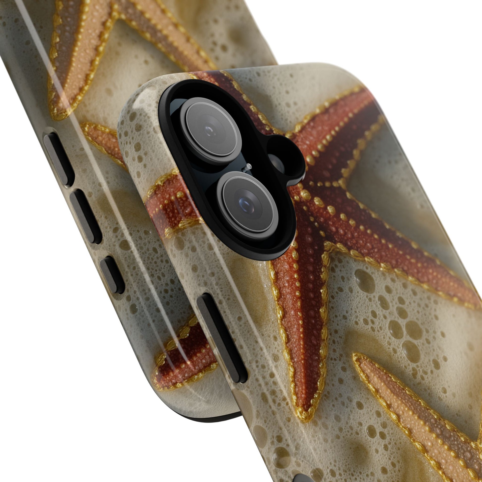 Bring a touch of the ocean to your everyday life with the Seastar Serenity case – a warm, beach-inspired design featuring detailed starfish gently resting on sunlit sand and foamy waves. The soft color palette and golden accents capture the calm, nostalgic feeling of a peaceful day by the sea. Perfect for ocean lovers and summer dreamers, this case offers a stylish, nature-inspired look while keeping your phone well protected.